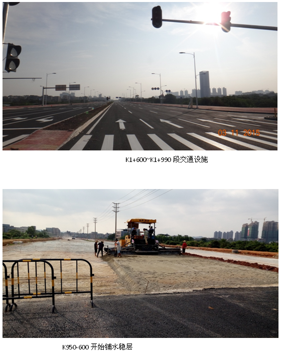 1、K1+990~K2+620段道路水稳层已完成630m;