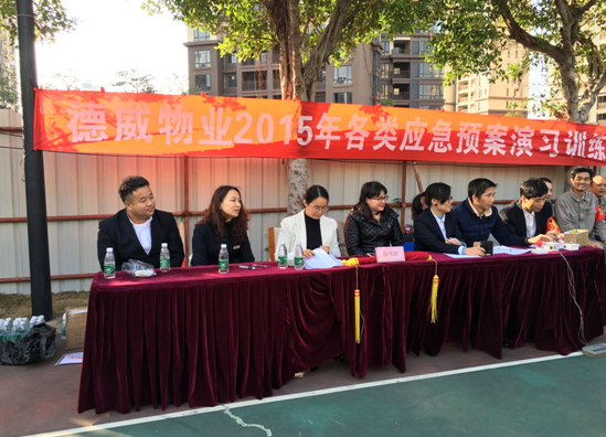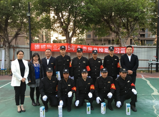 为提高公司员工的应急安全意识,增强消防观念,体现“安全第一,预防为主,防消结合”的消防方针,提高员工应对突发事件的应变处理能力,德威物业于2015年12月16日下午三时,在摩卡生活花园篮球场举行了“德威物业2015年各类应急预案演习训练”。