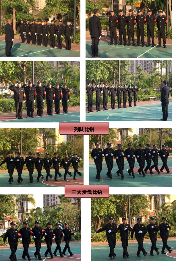 这一项目很好的展示了护卫队伍的团队形象,提升护卫队伍的精神面貌及综合素质。主要考验护卫队员对列队、三大步伐、车辆指挥手势等动作的规范性、统一性及团结性。