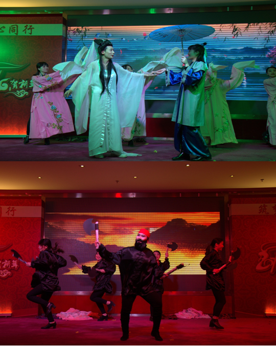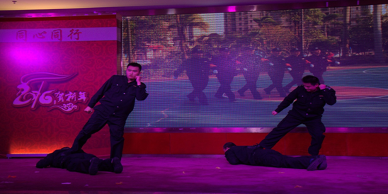 首先由财务中心的萌妹子、小鲜肉给我们带来的舞蹈《风风火火》,寓意着风风火火迎接2016。接下来各中心、各下属公司纷纷登台,为晚会带来一场又一场的精彩表演,将晚会推向高潮。