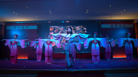 为了这一美好的时刻,公司上下两个月前就为之忙碌与努力着。从最初的晚会方案构思,晚会节目的准备、排练、刷选、彩排,晚会道具、衣服挑选与租赁,晚会现场布置、礼品准备,现场工作分工,每一步都离不开同事们的辛勤努力与付出。多少次同事们为了晚会准备工作不辞辛劳,加班加点;多少次同事们为了精彩的节目吃着快餐,放弃休息时间,加紧排练;多少次集合讨论,查缺补漏,为的只是那一个欢乐的时刻。从前一天晚会现场布置场地开始时,公司领导多次莅临现场协调、指正,为的是使整个晚会现场更加的美观与喜庆。