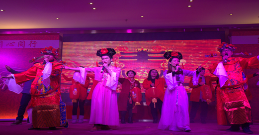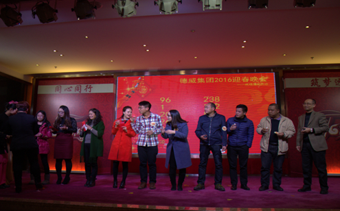 2016年2月3日晚,德威集团2016年“同心同行,筑梦远航”迎春晚会在福满楼万福厅隆重上演。集团公司全体员工、下属公司员工代表及工程部班组负责人、嘉宾共计约300人齐聚一堂,共同迎接这美好的时刻。