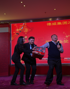 所有节目表演完后,晚会来到了最激动人心的时刻——特等奖抽奖(5000元现金)。两名特等奖最后花落饮食公司副总经理叶东梅及成本管理部吴保君。原设定奖项抽完后,看着台下一双双意犹未尽的双眼,林董随即拿出厚厚一叠现金,临时追加奖项,再一次将晚会带向最高潮。