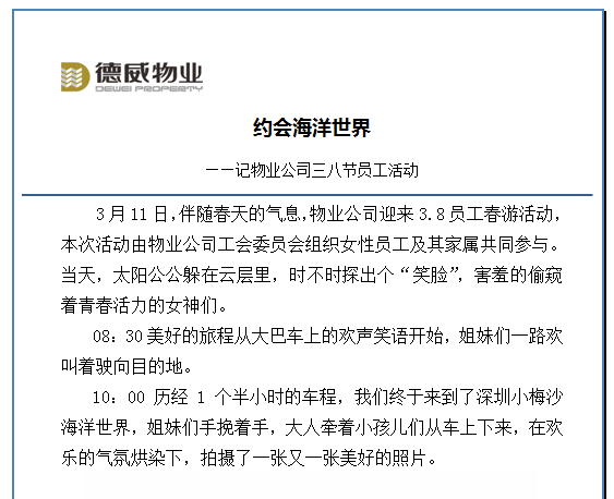 约会海洋世界——记物业公司三八节员工活动