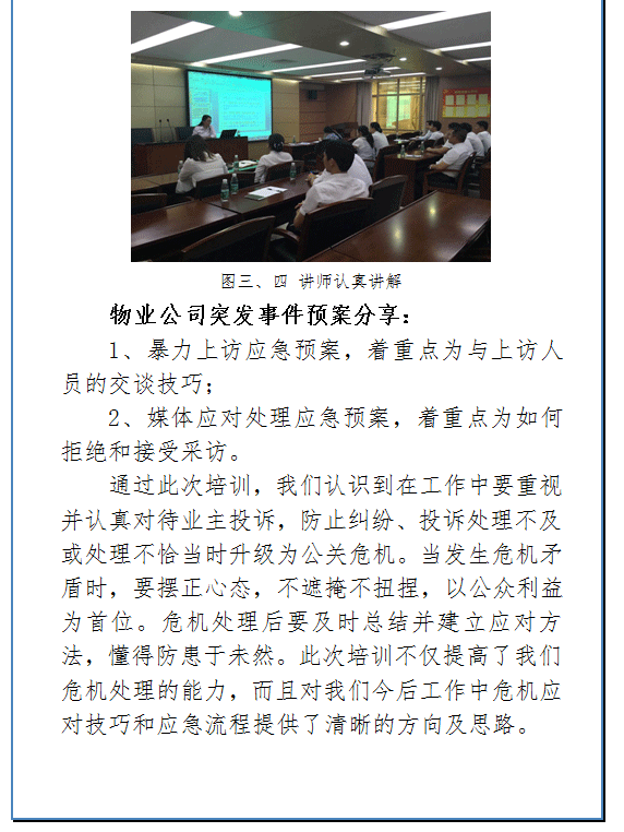 物业公司危机应对培训会议简报