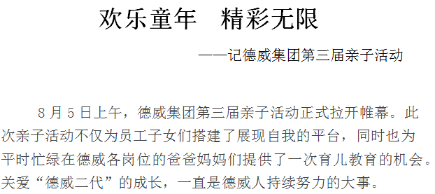 欢乐童年 精彩无限 ——记德威集团第三届亲子活动