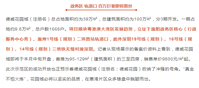 德威集团挺进粤港澳大湾区 抢先布局惠阳行政新中心