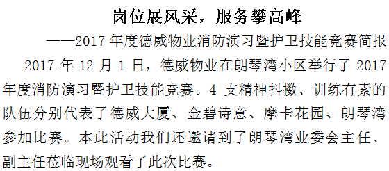 岗位展风采,服务攀高峰—2017年度物业消防演习暨护卫技能竞赛简报