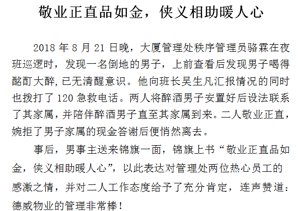 敬业正直品如金,侠义相助暖人心